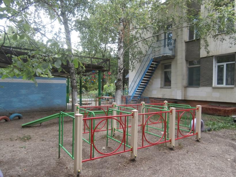 Территория детского сада озеленена насаждениями по всему периметру. На территории учреждения имеются различные виды деревьев и кустарников, газоны, клумбы и цветники.