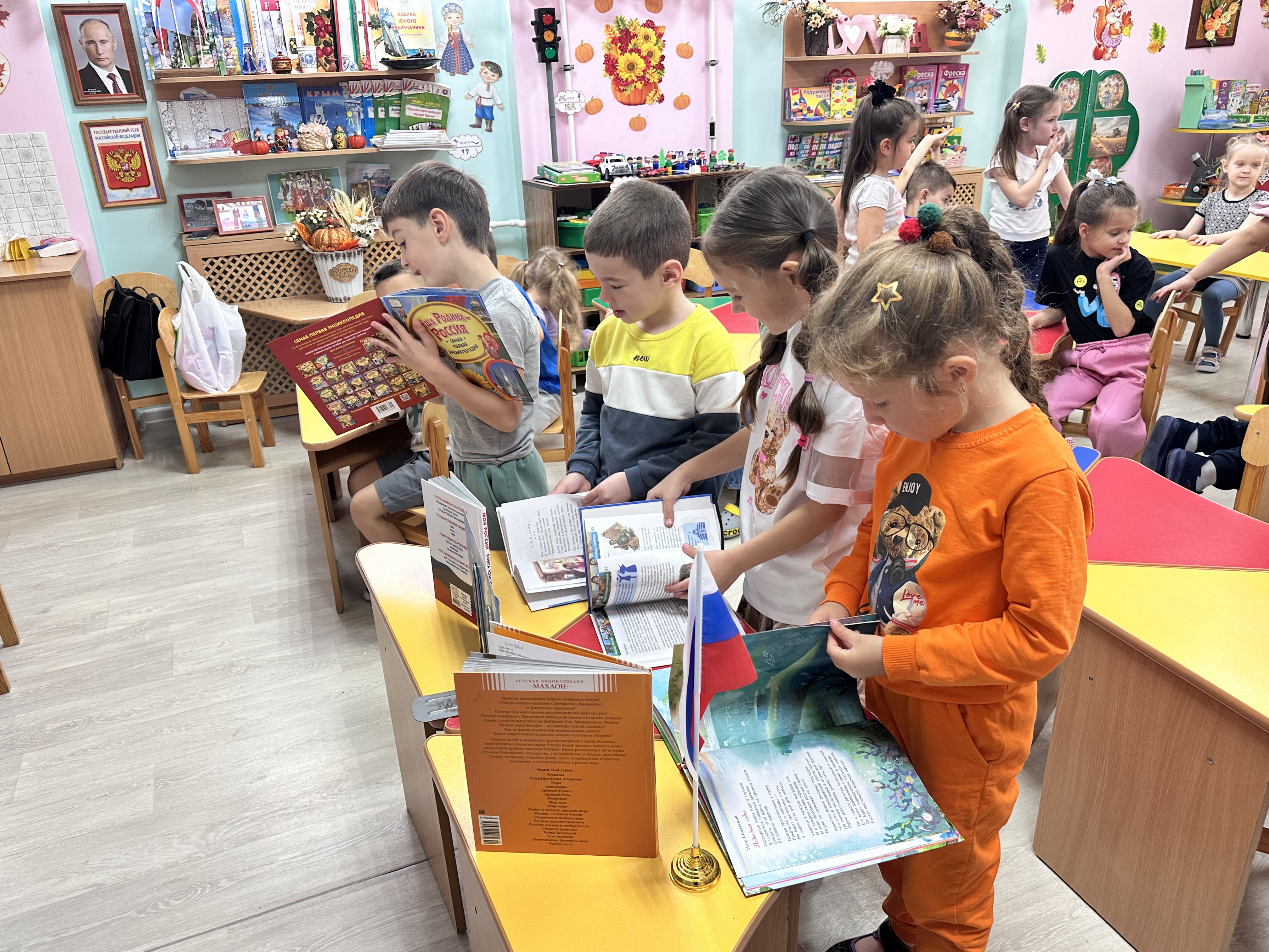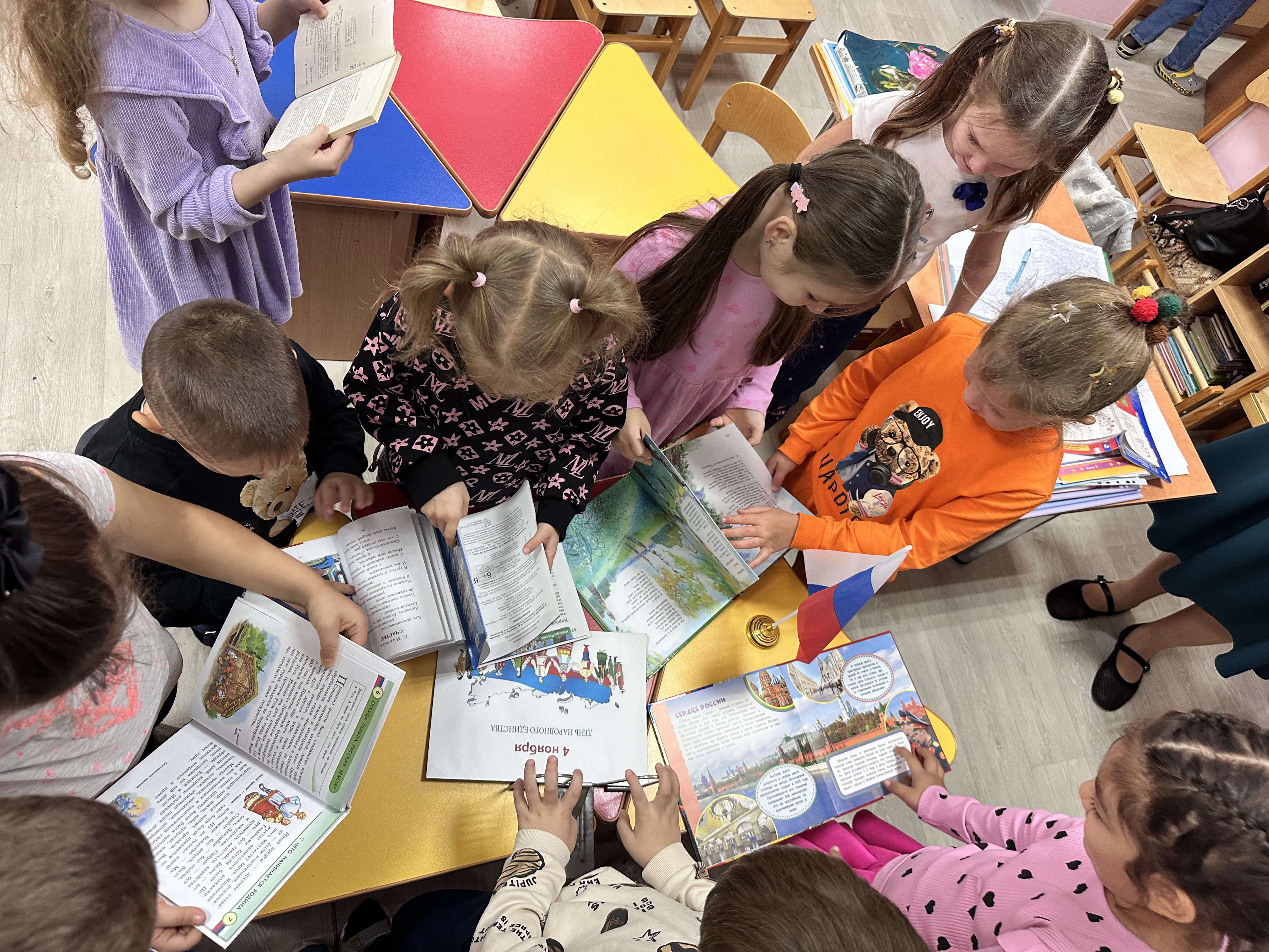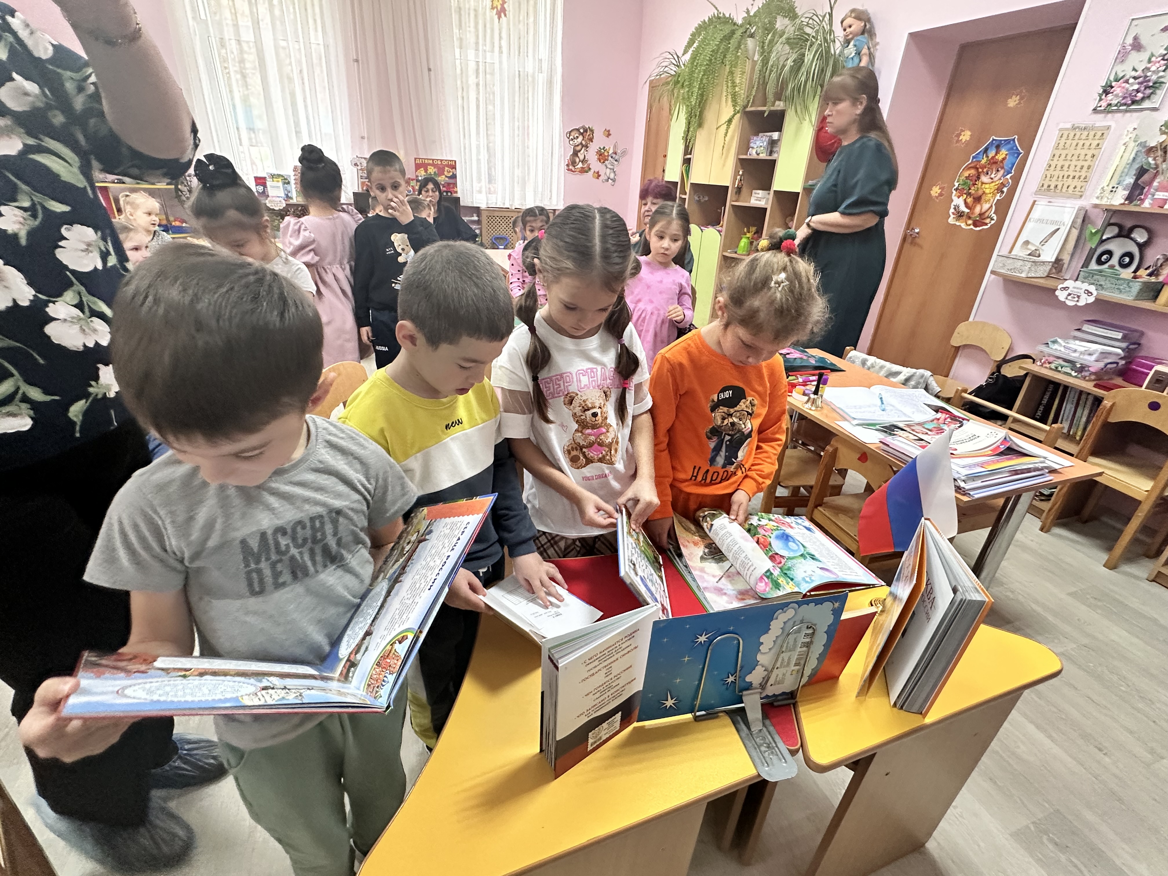 Библиотекарь познакомила детей с историей возникновения праздника. Особое внимание было уделено исторической памяти: присутствующие узнали о событиях 1612 года, когда народное ополчение под предводительством Кузьмы Минина и Дмитрия Пожарского освободили Москву от польских интервентов, продемонстрировав героизм и сплоченность всего народа. Затем ребята послушали стихи о России, назвали символы нашего государства, вспомнили пословицы и поговорки о дружбе. С удовольствием поучаствовали в играх «Умники и умницы», «Круг дружбы». А весёлая физкультминутка доставила дошкольникам массу позитивных моментов и радости.