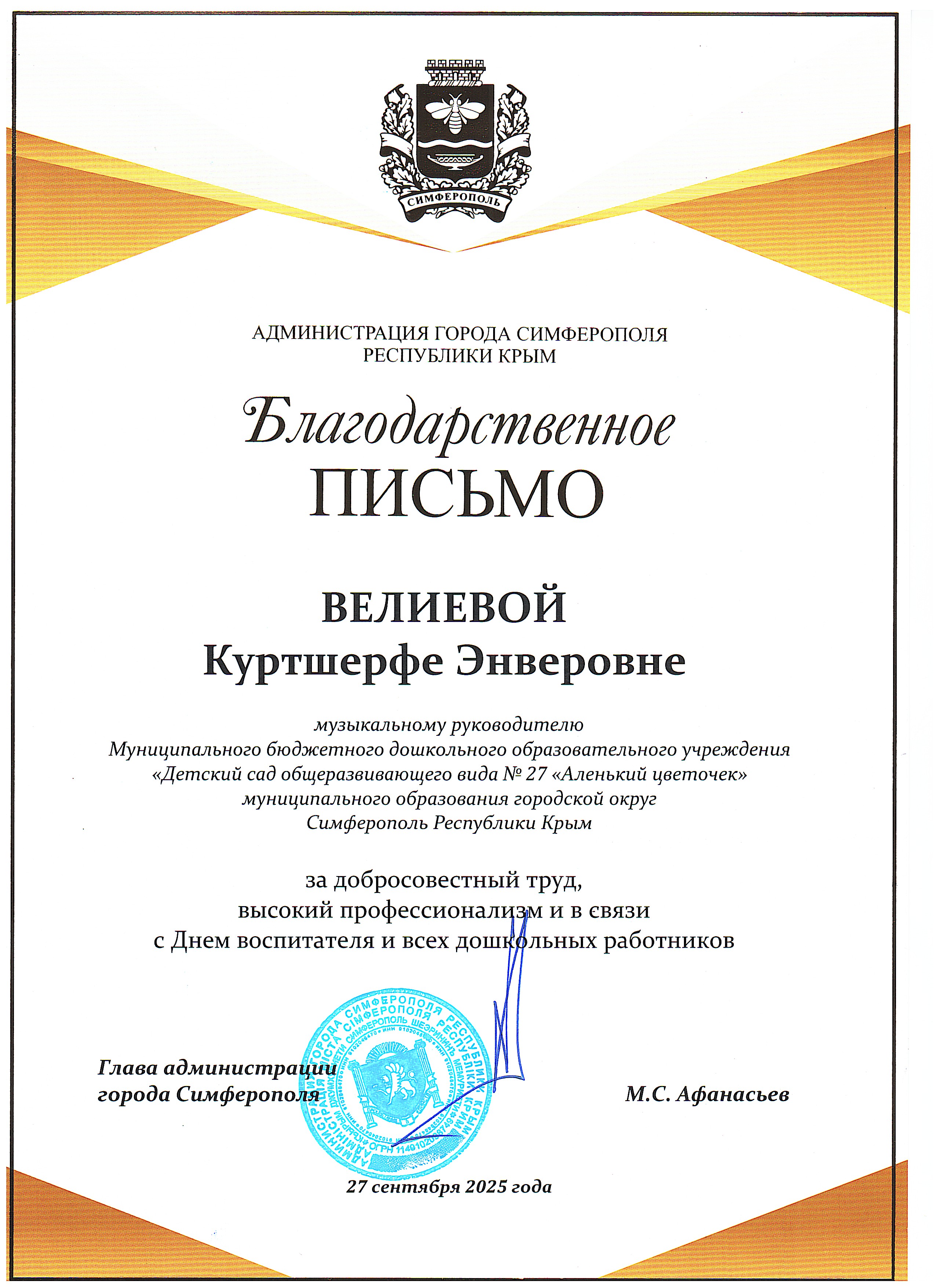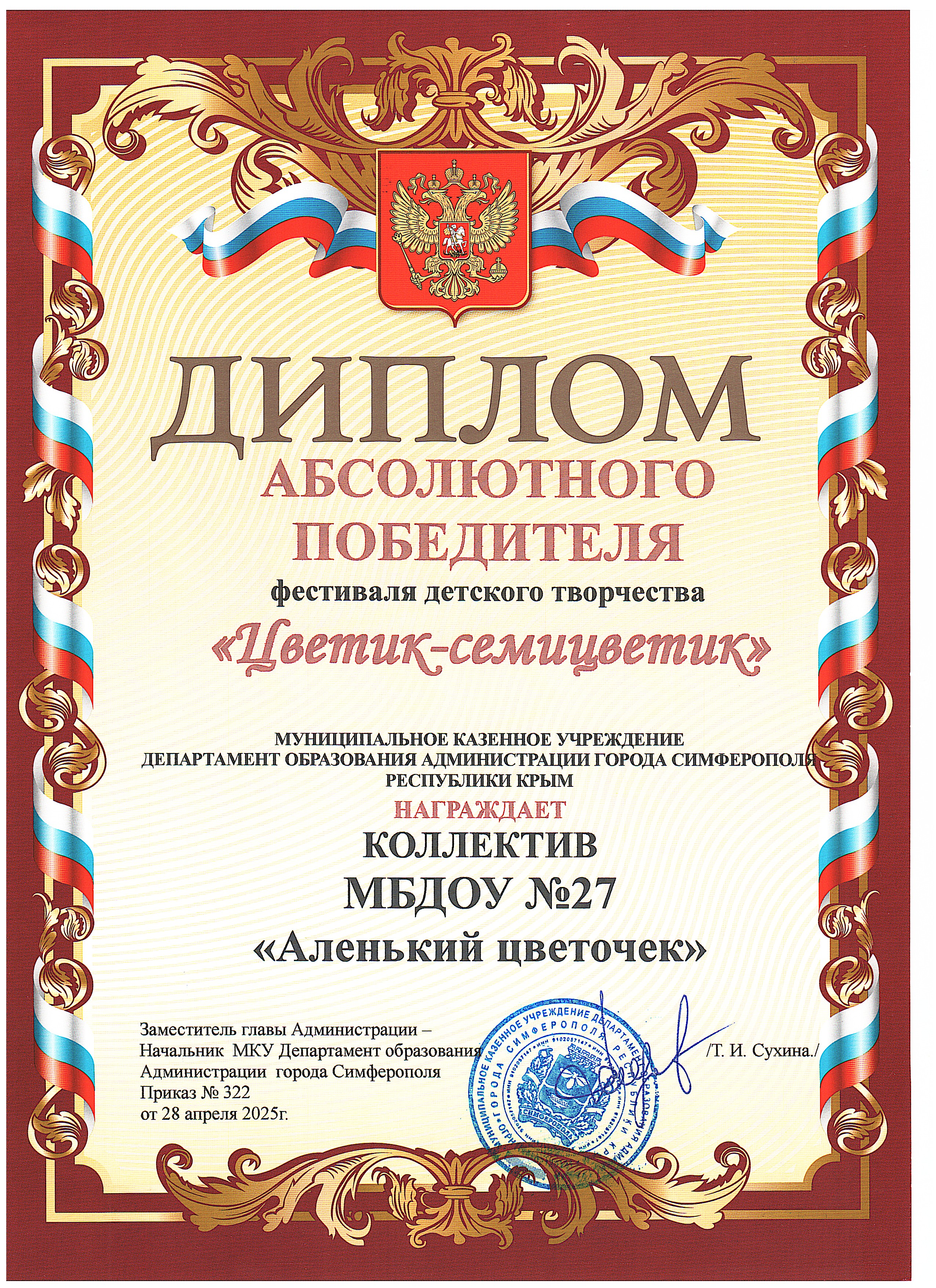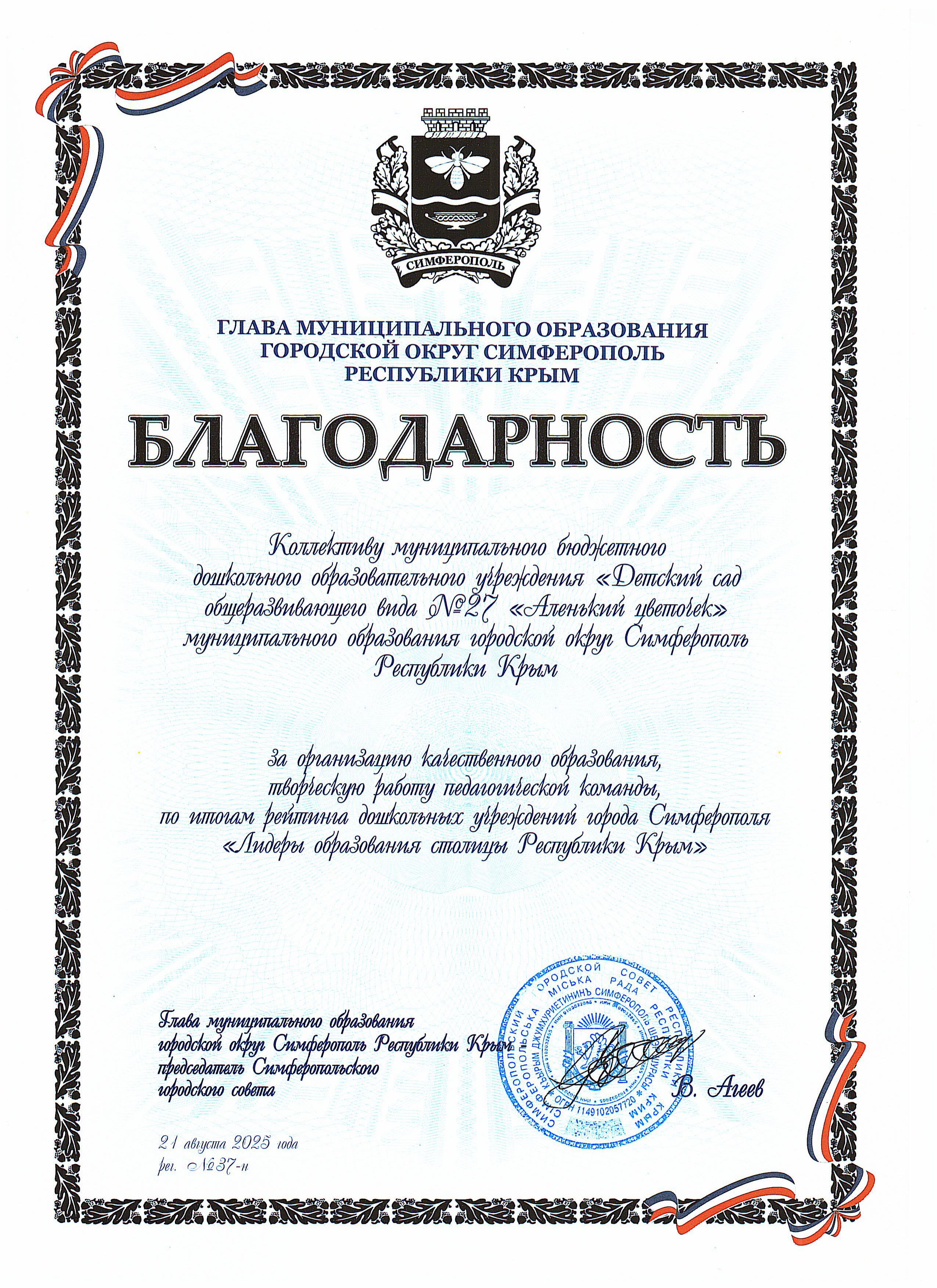 Муниципальное бюджетное дошкольное образовательное учреждение «Детский сад общеразвивающего вида №27 «Аленький цветочек» муниципального образования городской округ Симферополь Республики Крым
