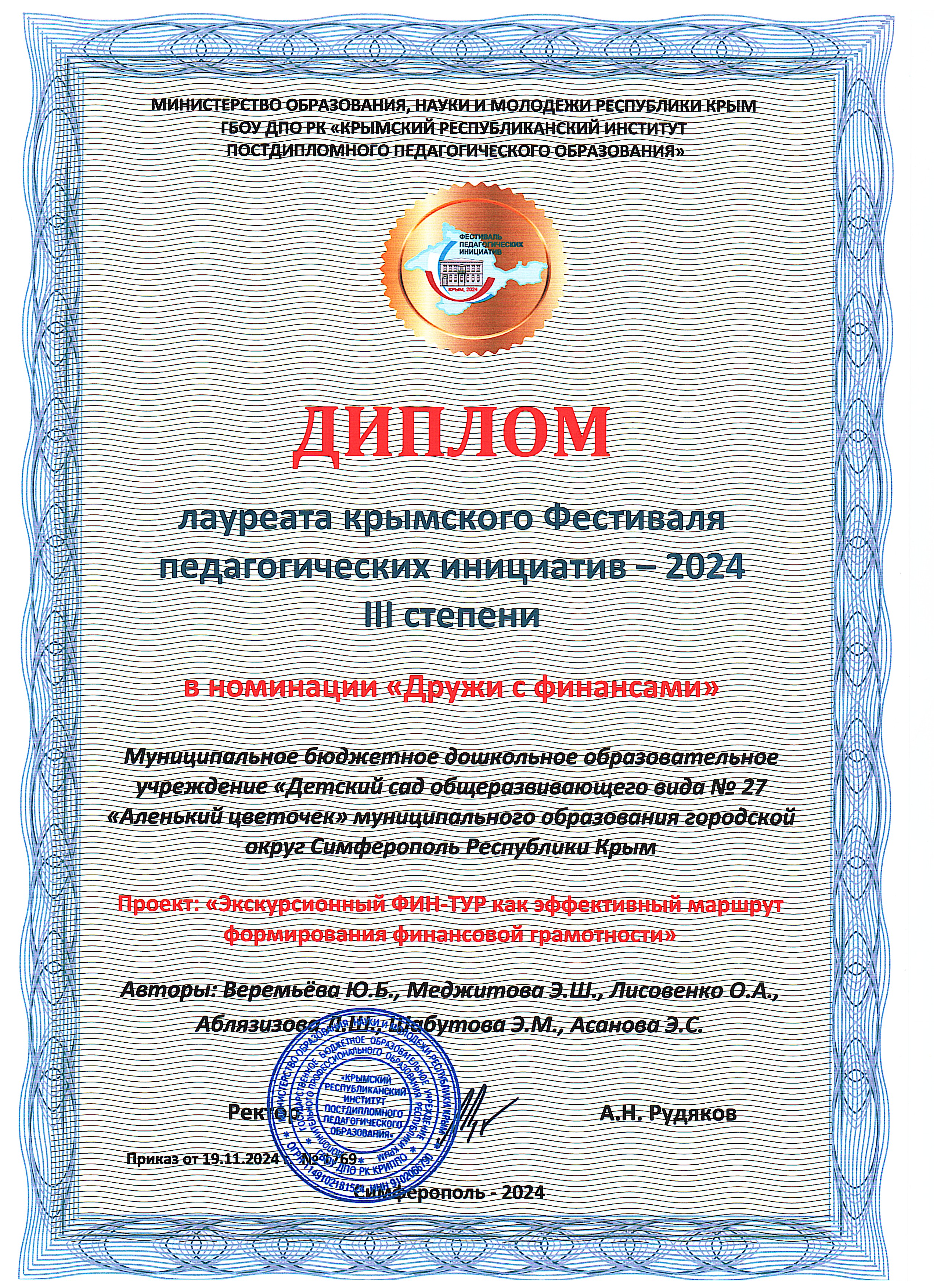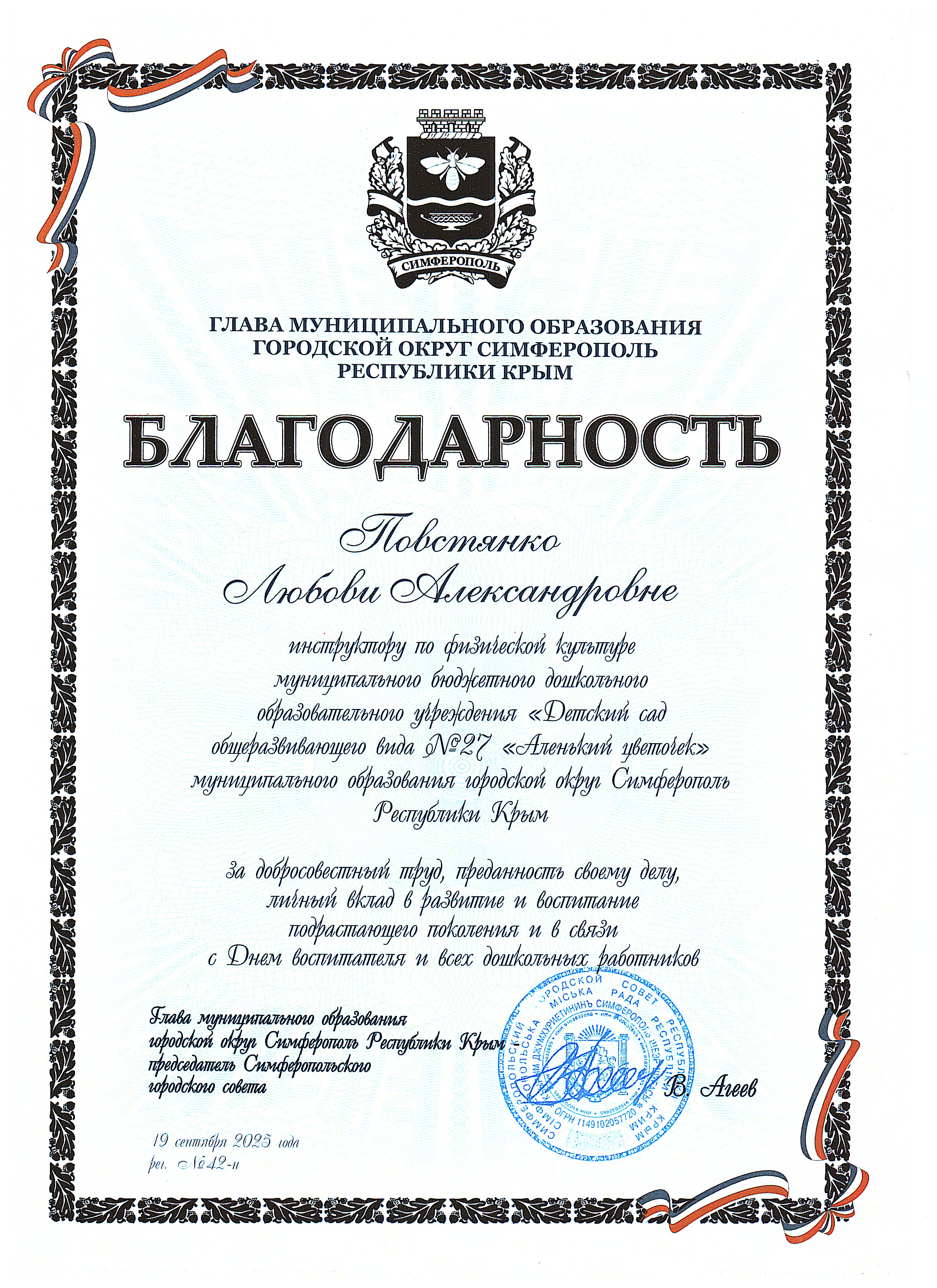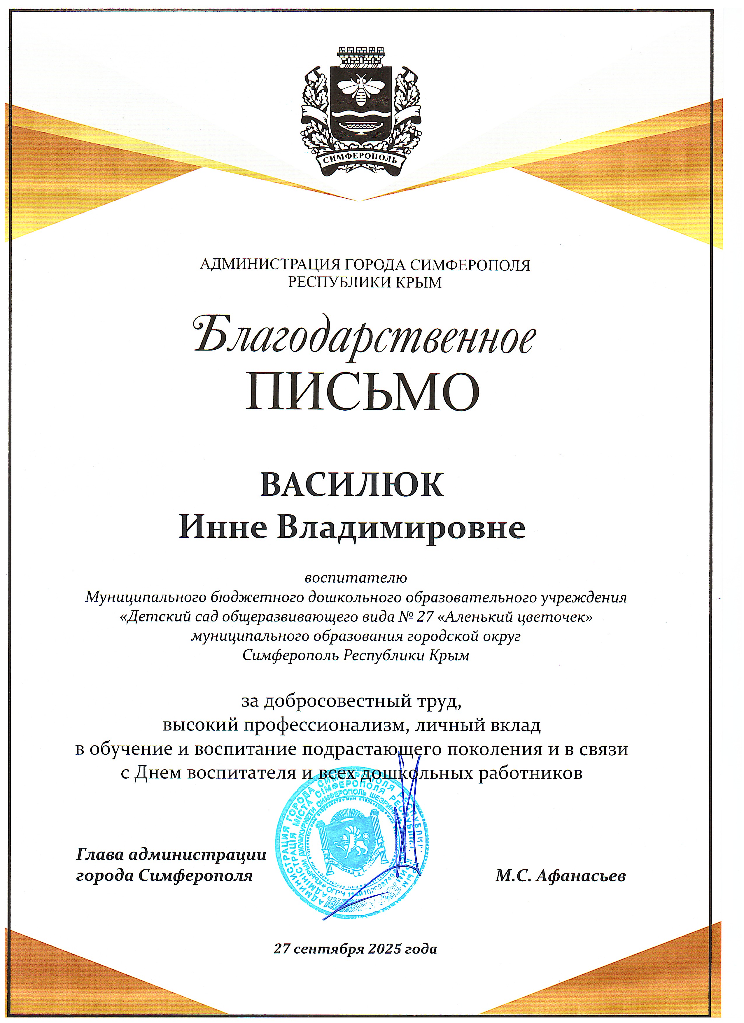 Муниципальное бюджетное дошкольное образовательное учреждение «Детский сад общеразвивающего вида №27 «Аленький цветочек» муниципального образования городской округ Симферополь Республики Крым
